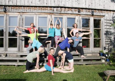 Pomiędzy zajęciami zachęcam do wygrzewania się na hamakach, kąpieli w Hańczy, spacerów szlakami po okolicy lub zanurzenia się w ciszy. Nasz dom mieści się na końcu wioski, z dala od dróg. Mieszkańcami siedliska są psy malamuty oraz koty we wszystkich kolorach. Uczestnicy warsztatów losują kto danego dnia może je głaskać. Klangor oznacza śpiew żurawi, które można spotkać w okolicy. Te i inne ptaki będziemy słyszeć codziennie.